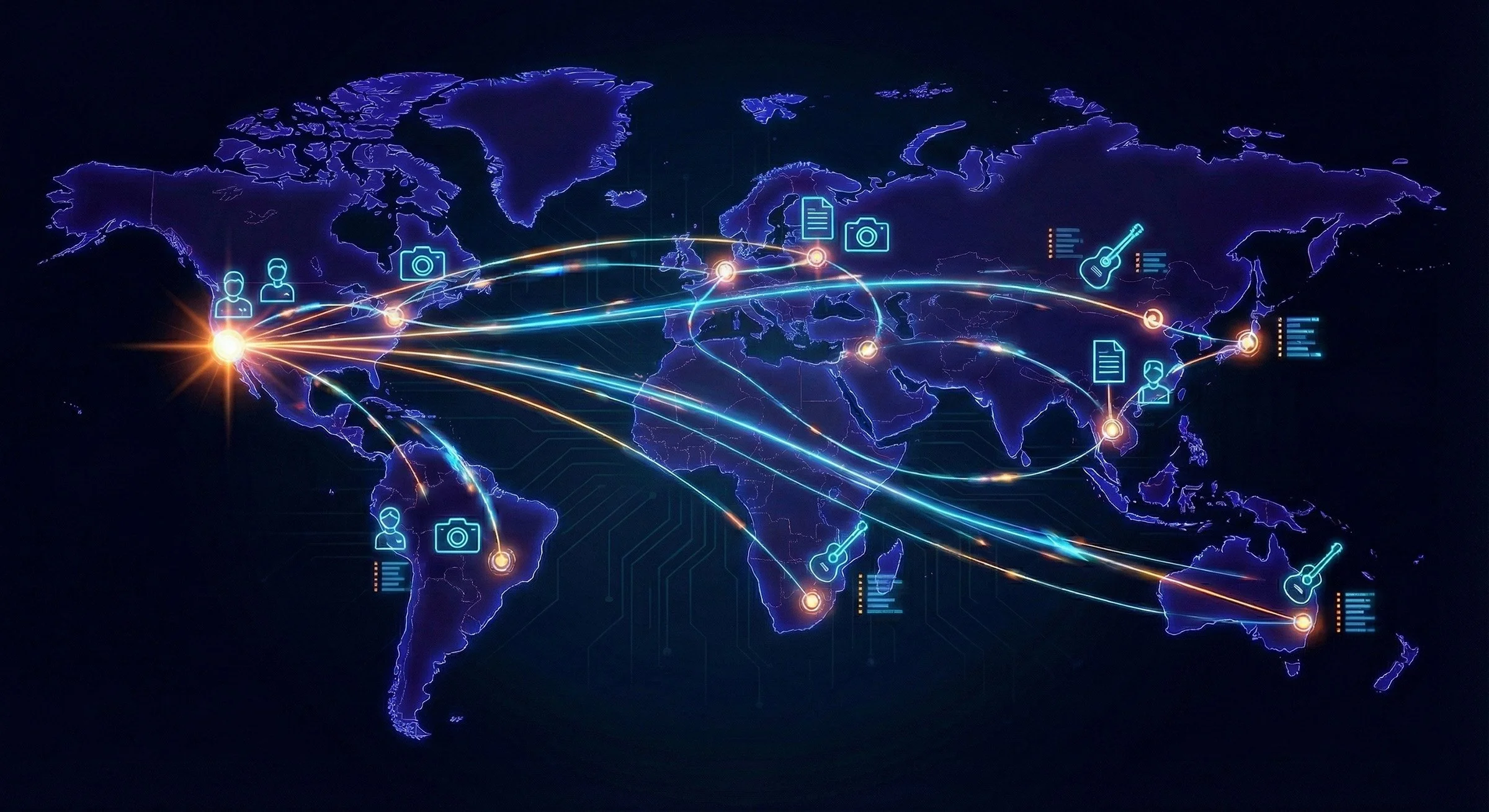 The Digital Supply Chain: A visualization of the centralized asset ecosystem I built to connect San Diego HQ with global distributors instantly.