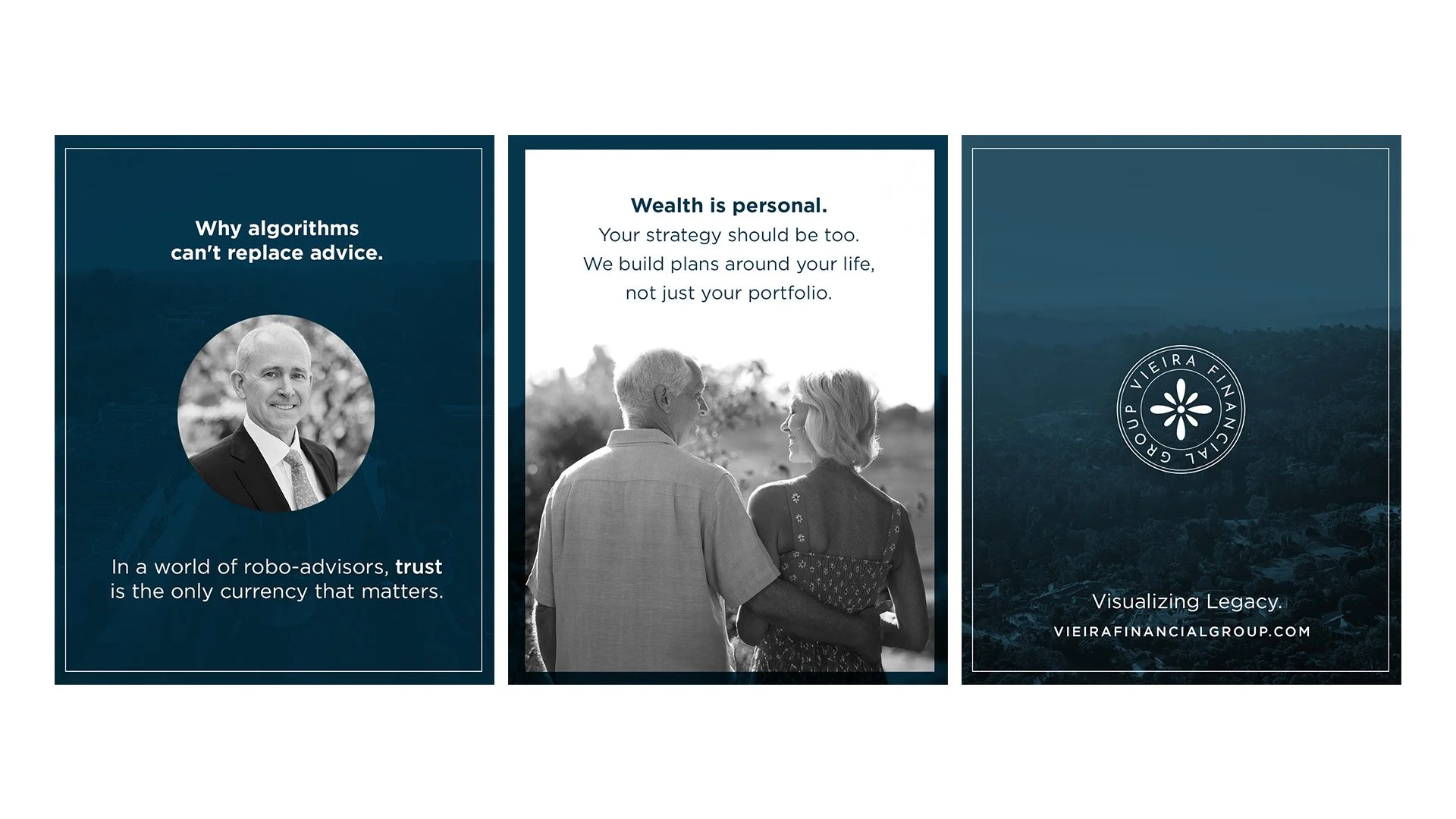 Wealth management marketing is often plagued by stiff stock photography and impersonal jargon. Vieira Financial Group needed to break that mold.